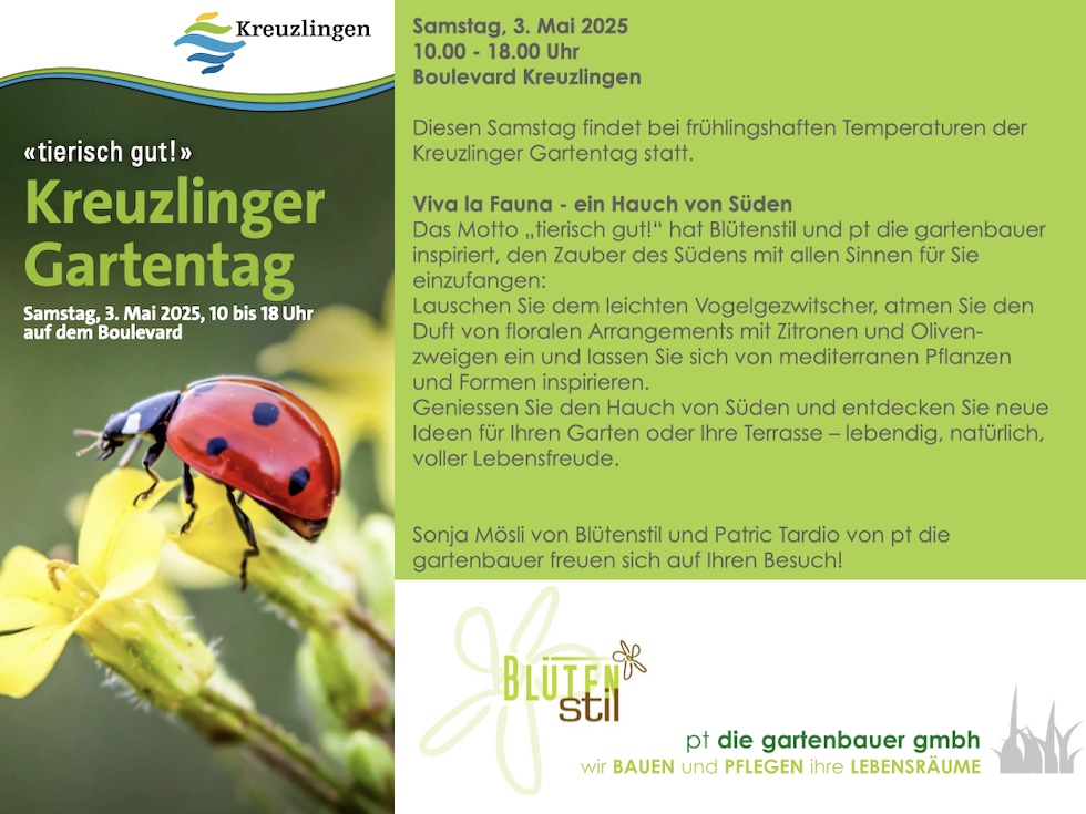 "Natürliche Schönheit im Fokus" - Mit diesem Motto konnten wir ganz viele Besucher an unserem Stand am diesjährigen Kreuzlinger Gartentag vom 4. Mai 2024 begrüssen.